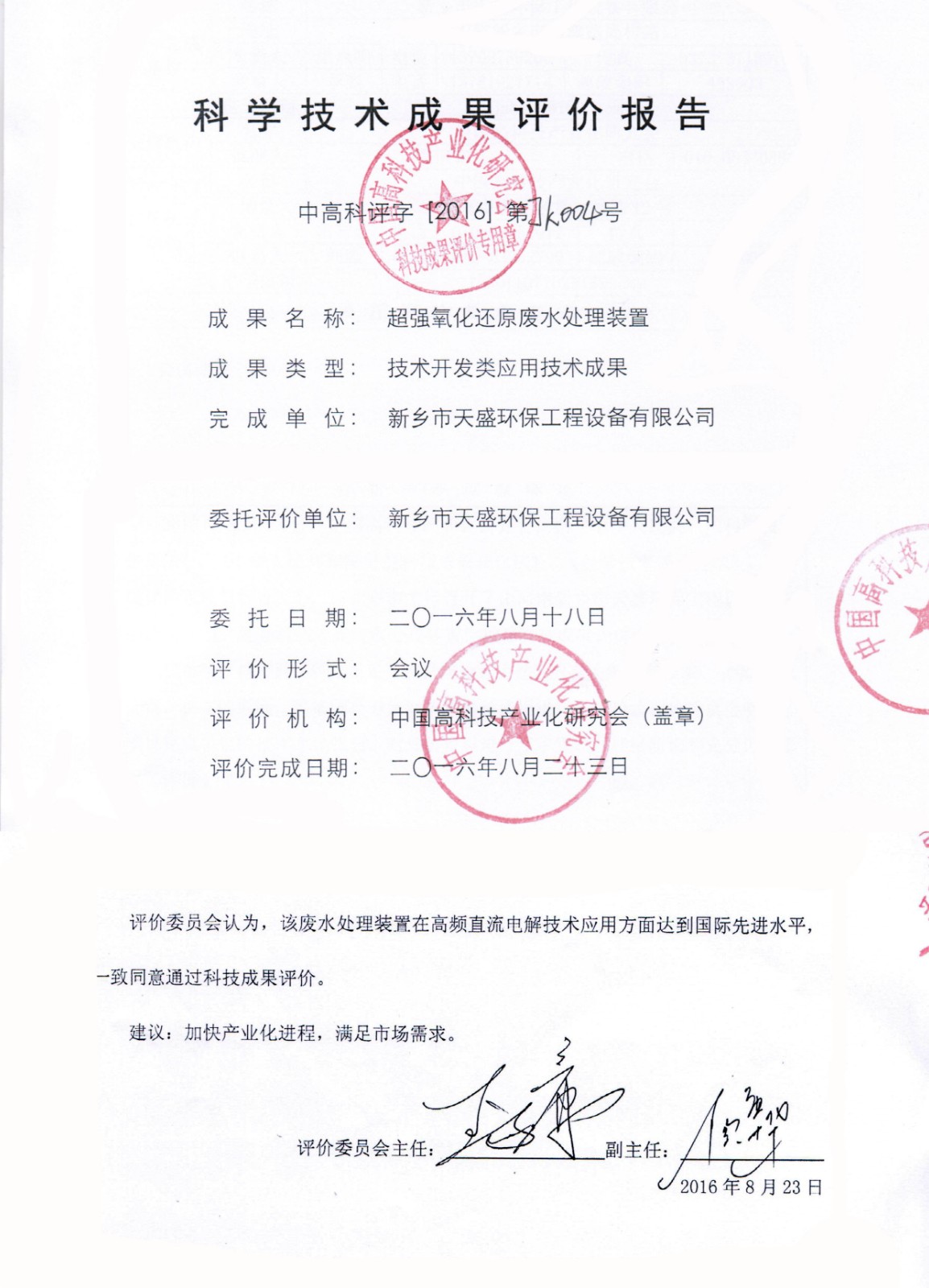 中國高新技術網發(fā)布:《關注:解碼科技創(chuàng)新》——新鄉(xiāng)市天盛環(huán)?!俺瑥娧趸€原廢水處理技術”